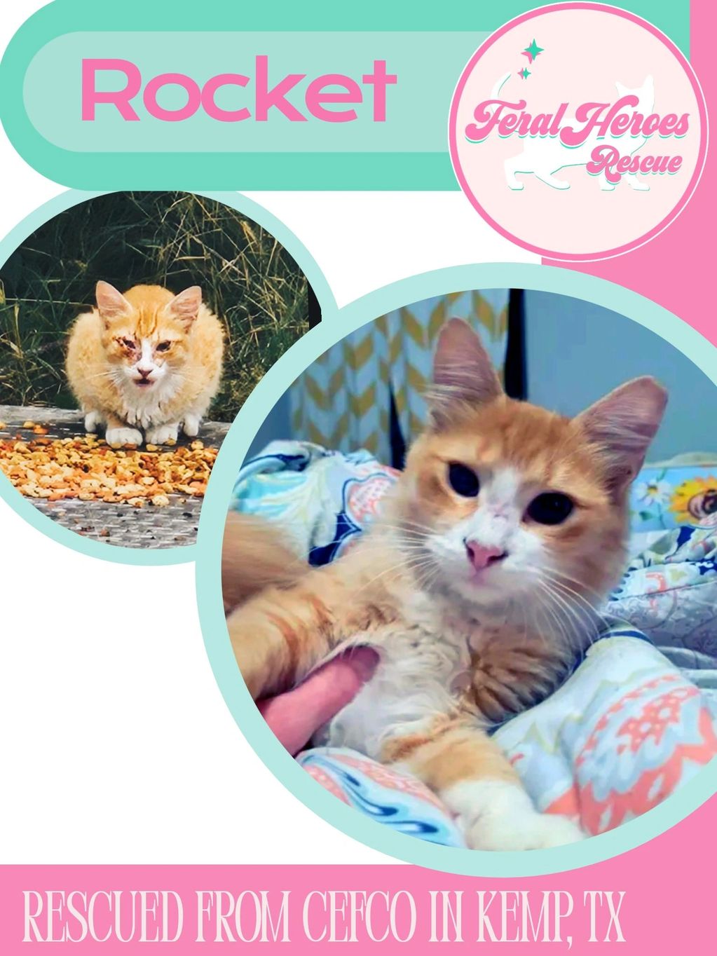 Rocket was rescued from CEFCO in Kemp, TX. He was neutered, vaccinated and fostered until he was able to be sent on transport Dec 2024, where he was adopted the same weekend!!! He is now living his best life.